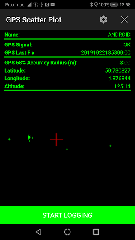 During logging the GPS positions are displayed on the screen. When logging is stopped the average position is displayed.